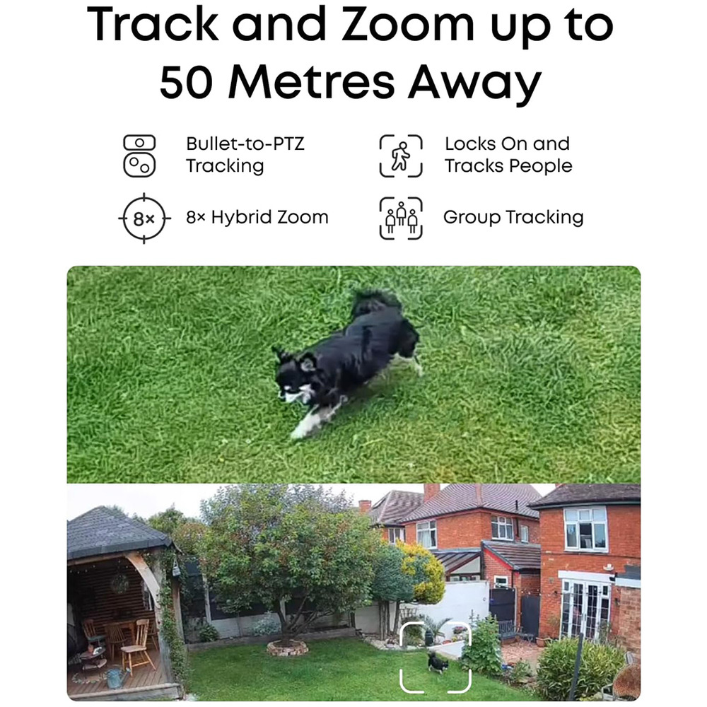 • Special Features: AI-powered, PTZ control, two-way audio, live cross-cam tracking