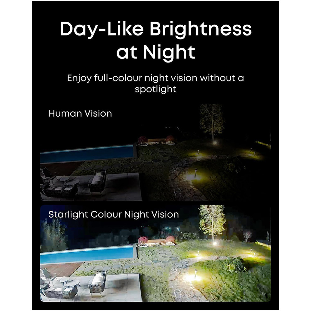 • Starlight Color Night Vision: AI-ISP processing, HDR, optional spotlight for crisp night images and license plate recognition