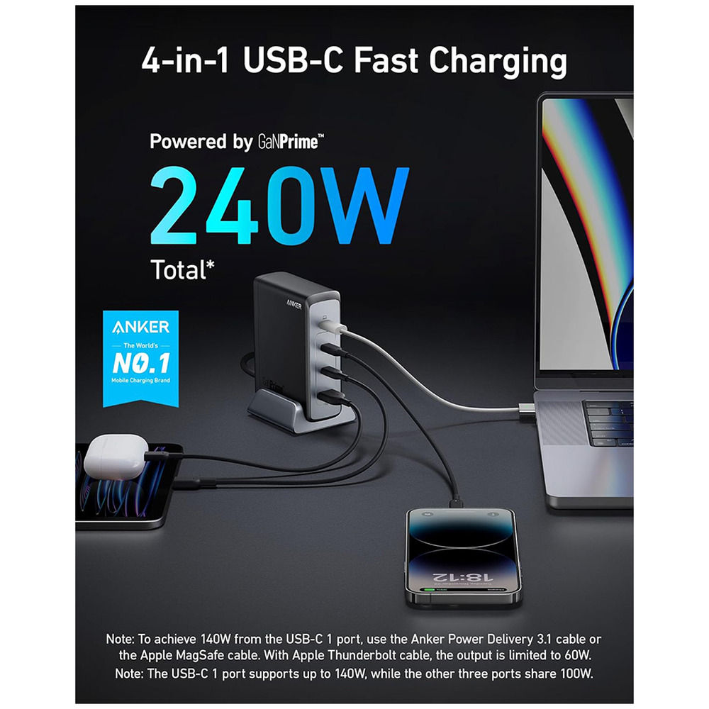 • Anker 240W GaN USB-C Charger (4 Ports)