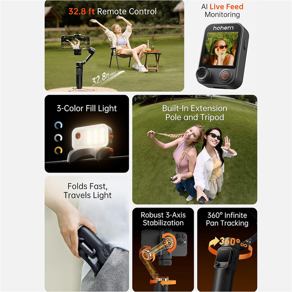 • Beginner-Friendly App – Works with Hohem Joy app for templates and creative modes