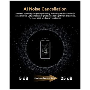 - AI-powered noise cancellation (5–25dB adjustable) for clear vocals
