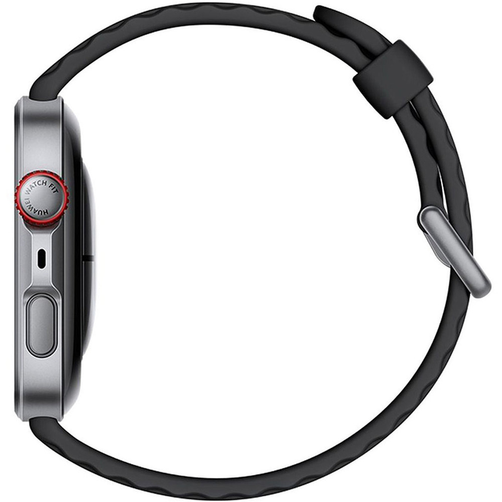 The HUAWEI WATCH FIT 4 Pro by Huawei is a sleek and powerful smartwatch in black, featuring a 1.82-inch AMOLED display with 480 x 408 resolution and 3000-nit brightness. It offers advanced connectivity with GPS, Bluetooth 5.2, and NFC. The watch delivers up to 10 days of battery life, including a full day after just 10 minutes of charging. Built with a titanium alloy bezel, sapphire screen, and a robust 550 MPa aluminum body, it provides triple protection and dive-grade water resistance up to 5 ATM, including depth tracking up to 40 meters. Designed for fitness enthusiasts, it supports over 100 workout modes, swimming and water sports tracking, and includes a golf course map of 15,000+ courses with advanced GPS navigation. Health monitoring features include an ECG app, pulse wave arrhythmia analysis, sleep health monitoring, SpO2, heart rate, stress and mood tracking, powered by the HUAWEI TruSense system monitoring six major health systems. Smart lifestyle features include a voice notepad, quick message replies, Bluetooth calling, remote shutter, and customizable watch faces. Lightweight and ergonomic, weighing only 30.4 g with a 3D wing-like design, the watch is compatible with iOS and Android devices. The box includes the watch, a charging cradle with cable, and a quick start guide. It runs on Harmony OS and supports email, activity tracking, always-on display, GPS, touchscreen, and heart rate & ECG measurement for a comprehensive smart wearable experience.