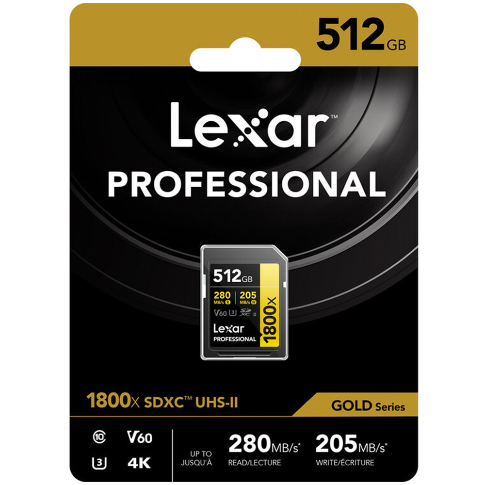 Lexar® Professional 512GB 1800x SDXC™ UHS-II GOLD Series