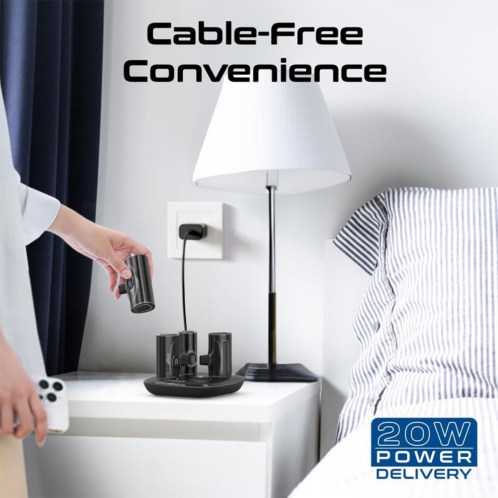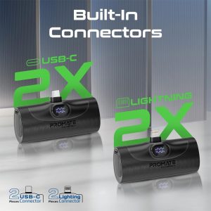 Each unit features a 5000mAh battery with built-in USB-C and Lightning connectors, eliminating the need for extra cables.