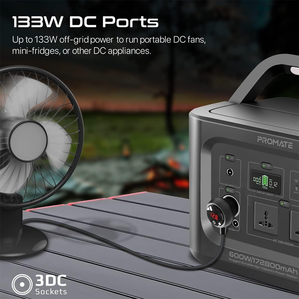 - Dual 133W DC ports and 133W car socket for DC devices