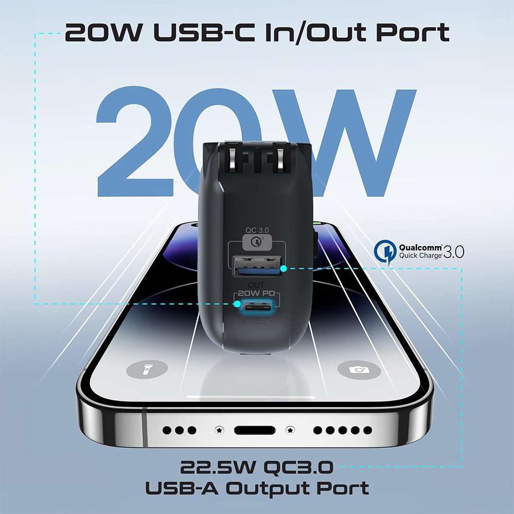 USB-A Output 5V/3A, 5V/4.5A (SCP), 9V/2A, 12V/1.5A (22.5W)