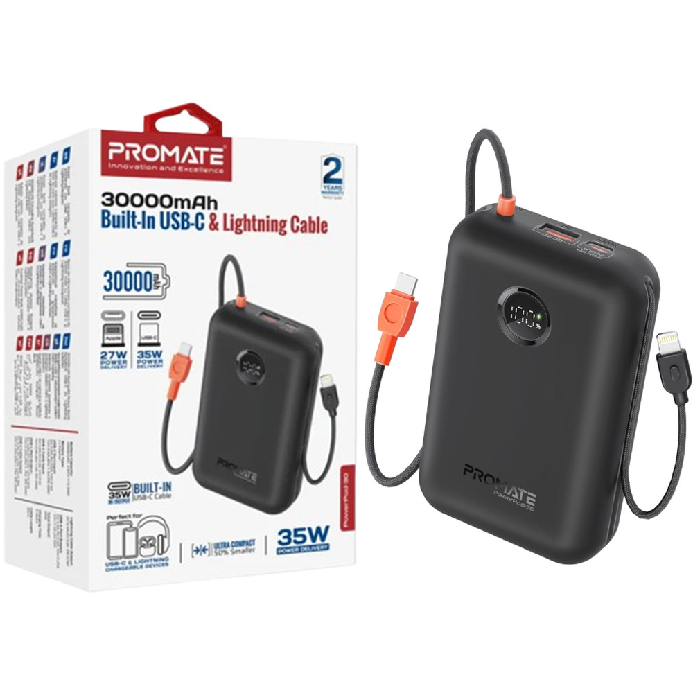 • 🔋 30000mAh Compact Power Bank: Charge up the day with Promate’s PowerPod-30 power bank featuring built-in USB-C and Lightning cables for versatile charging.