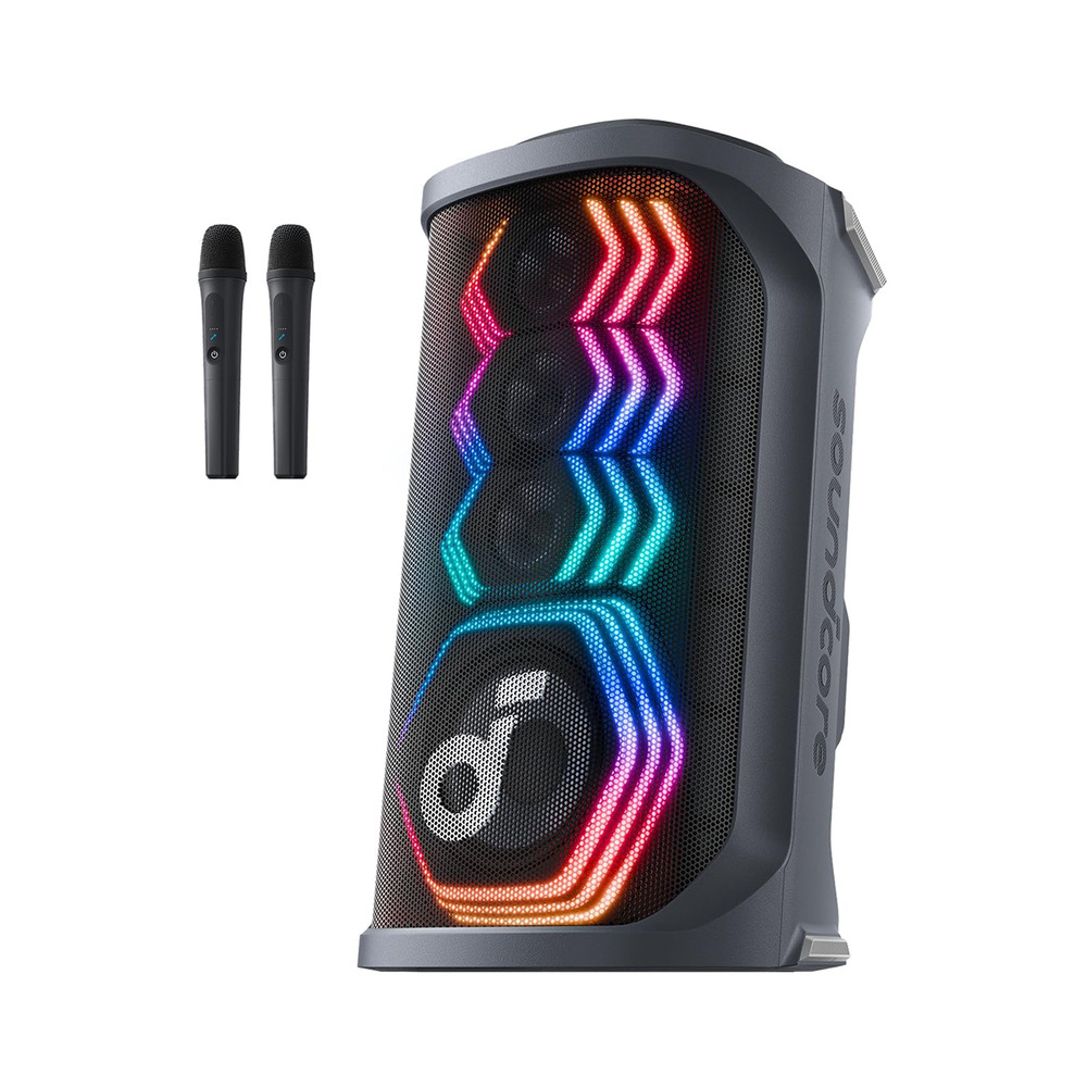 • Anker Soundcore Rave 3S AI Party Speaker with 2 Wireless Mics